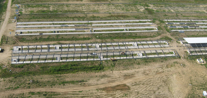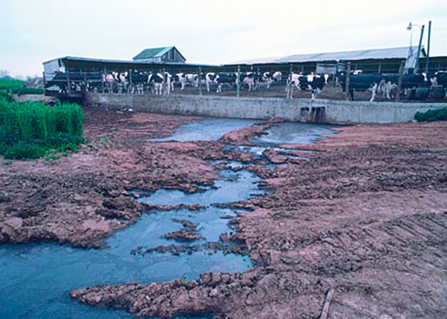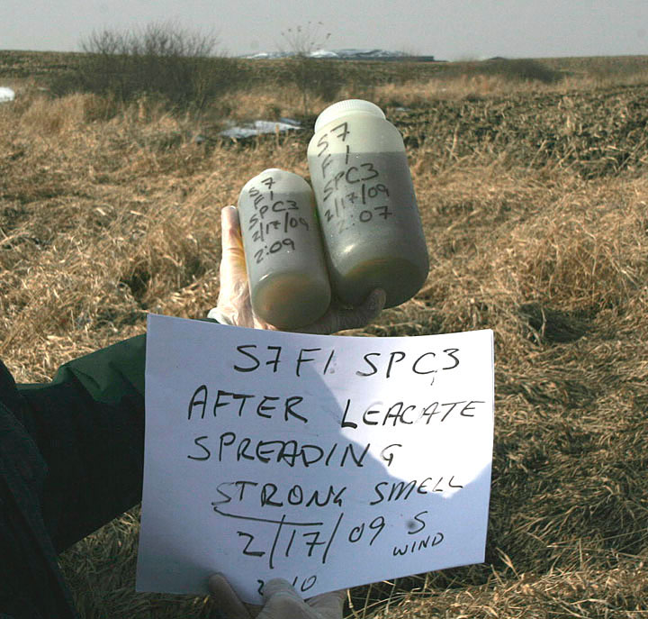 Leachate Pond Looking NW.Massive discharge of purple contaminants from mega dairy.Barn Coming DownBarn Down End ShotBottles with silage visible.Runoff from the factory farm.Spreading leachate on field.Hundreds of flies settle on a house near the mega dairy.